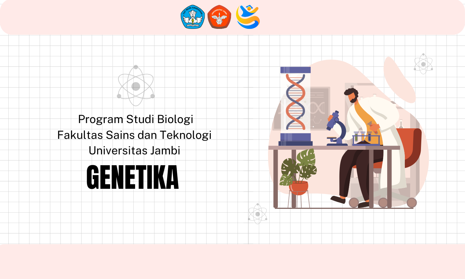 Mata kuliah ini merupakan dasar dalam bidang biologi yang mempelajari pewarisan sifat. Fokus utama genetika meliputi prinsip dasar genetika seperti penurunan sifat, interaksi gen, variasi kromosom, pautan, pindah silang, dan alel majemuk. Selain itu, akan dibahas hubungan genetika dengan populasi. Pada bagian akhir, materi meliputi genetika molekuler seperti proses replikasi, transkripsi, translasi, serta mutasi gen. Setelah mengikuti mata kuliah ini, mahasiswa diharapkan memahami konsep, pengertian, dan seluruh aspek yang berkaitan dengan genetika.
